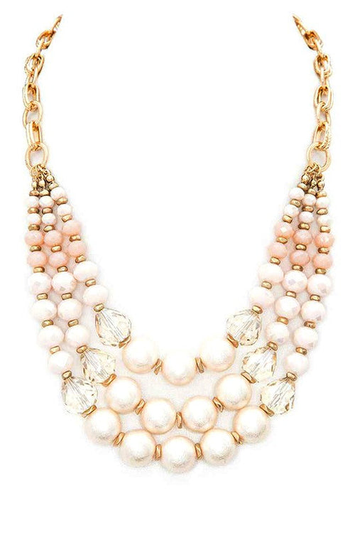 Crystal Pearl Station Layer Statement Necklace