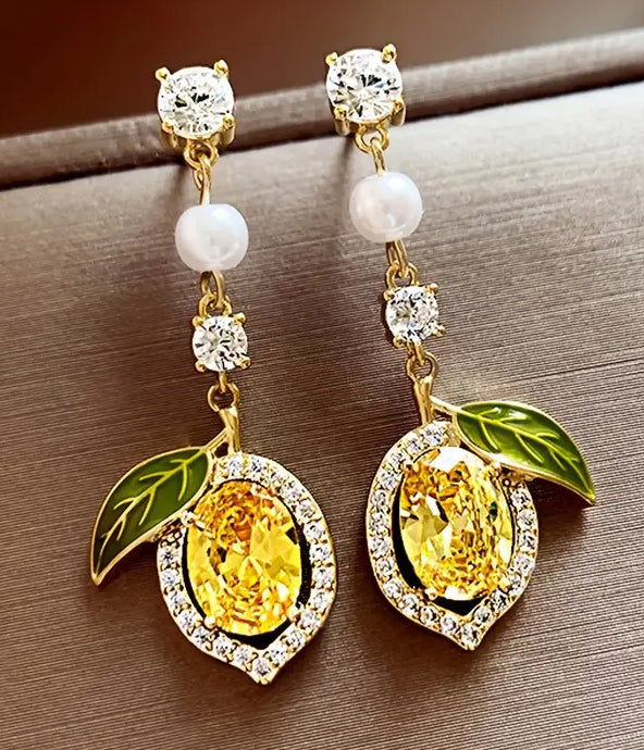 FRUIT THEME LEMON EARRING : Size- 0.51 X 1.7 INCHES : Color- GDYL